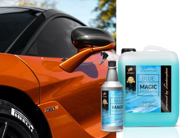 This unique product contains substantive polymers. Fortador BLUE MAGIC Wash provides better protection and leaves all surfaces smooth and shiny. Additional benefits include faster washing, and the ability to wash anywhere and anytime, including washing the interior, upholstery, and mats/rugs.